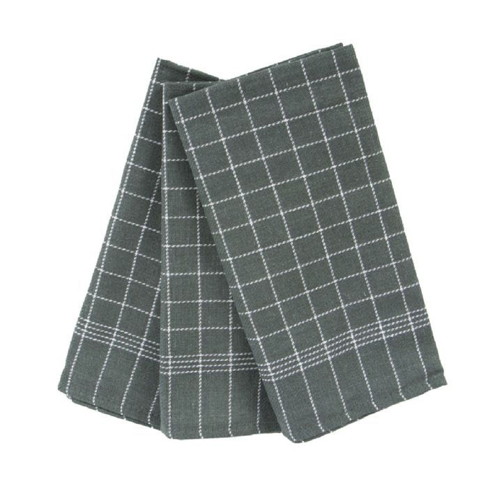 3 stk. Kokkeviskestykker - 50x100 cm grønne viskestykker med hvide tern