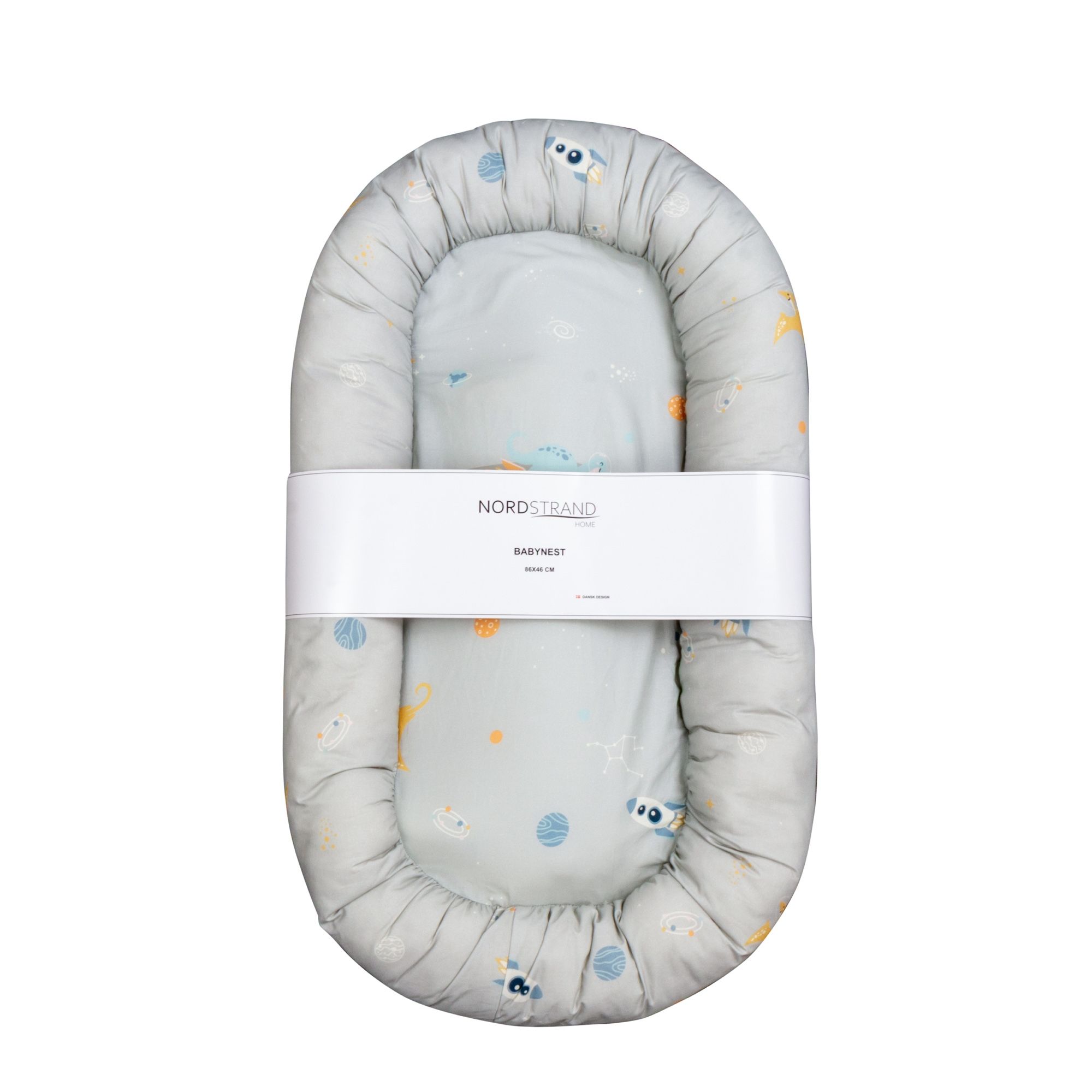 Babynest - Blød babynest 86 cm lang - Rum dinosaur kollektion til baby - Bomulds babyrede - Nordstrand Home babytilbehør