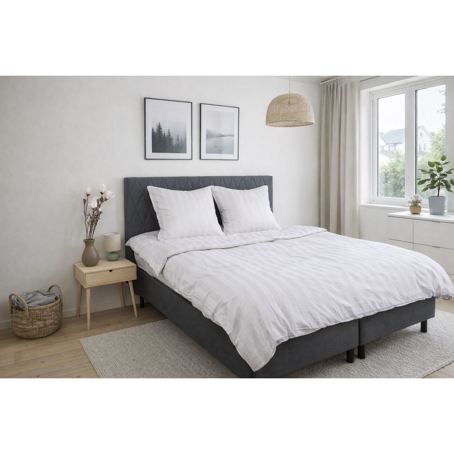 Bambus sengetøj - 100% Naturligt bambus - Hvidt, jacquardvævet sengesæt med striber