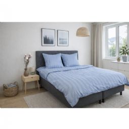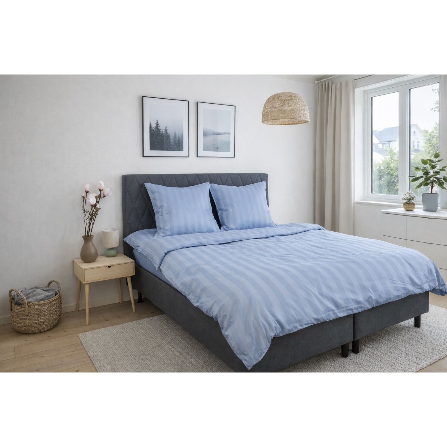 Bambus sengetøj - 100% Naturligt bambus - Blåt, jacquardvævet sengesæt med striber