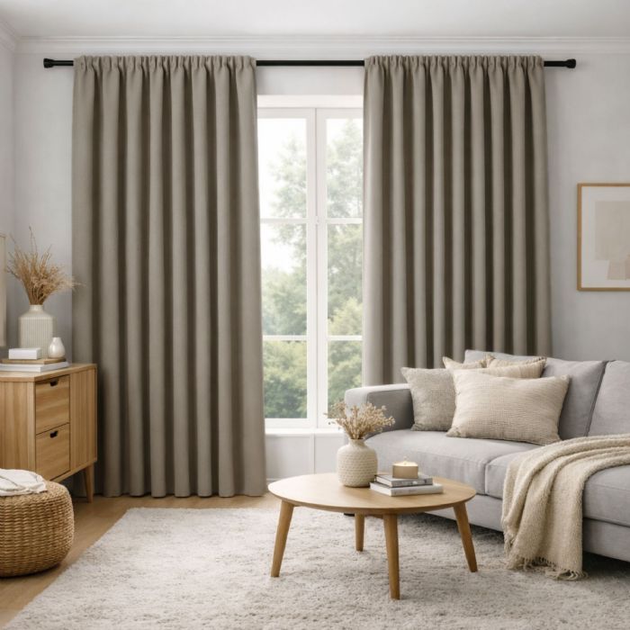 Ekstra langt mørklægningsgardin - 1 stk. færdigsyet gardin 140x300 cm - Beige - Nordstrand Home blackout gardinlængder med rynkebånd