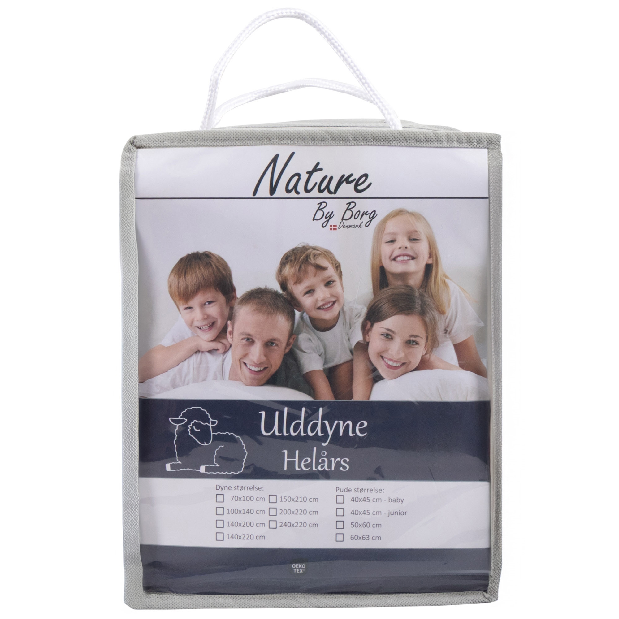 Med Nature By Borg helårs junior ulddyne får dit barn en dyne, der sikrer en behagelig og rolig søvn året rundt. Dynen er fyldt med 100% naturligt ny europæisk uld, der er kendt for sine fantastiske evner til at regulere temperaturen – perfekt til at holde dit barn varm om vinteren og kølig på varmere nætter.