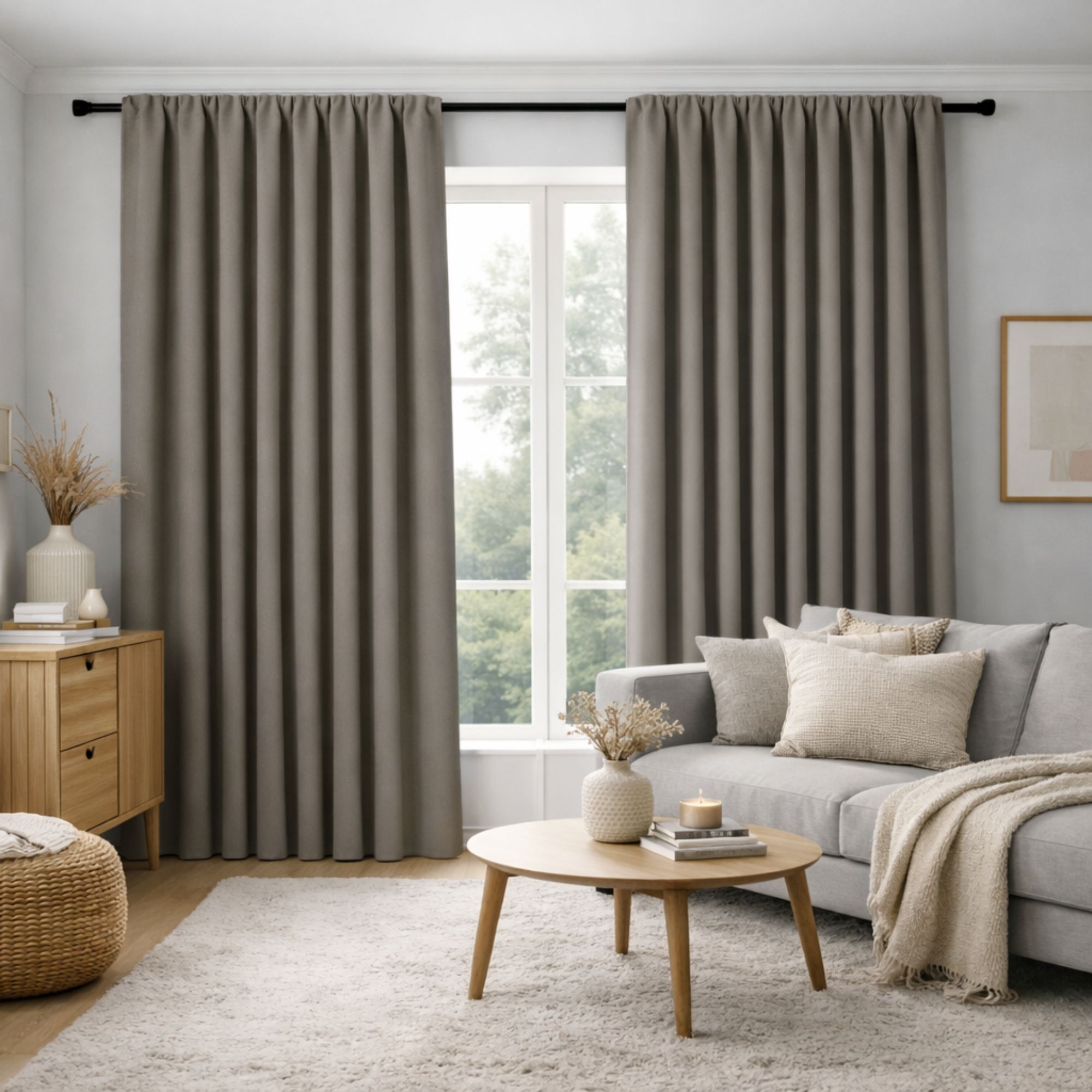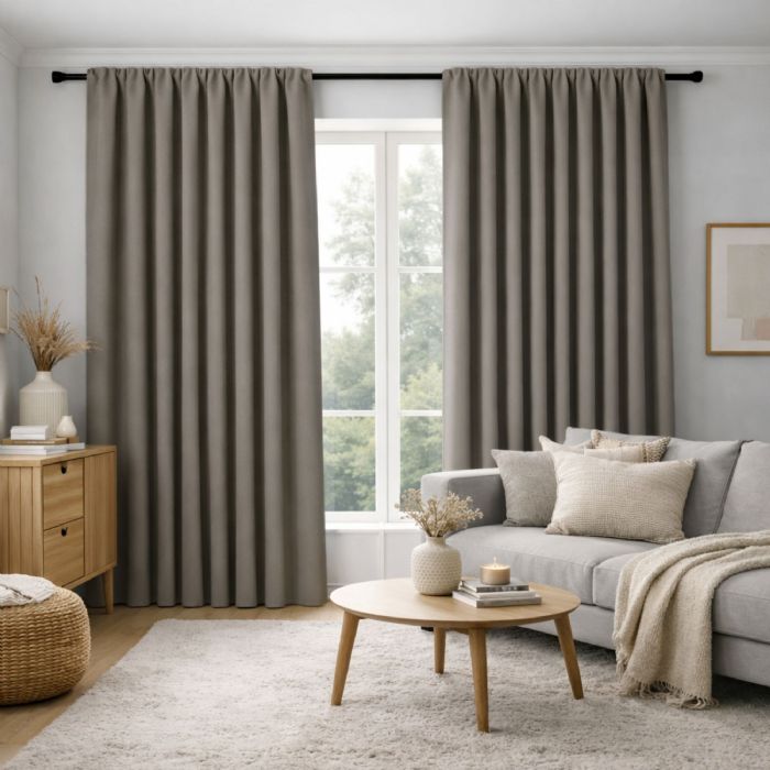 Langt mørklægningsgardin - 1 stk. færdigsyet gardin 140x245 cm - Sandfarvet - Nordstrand Home blackout gardinlængder med rynkebånd
