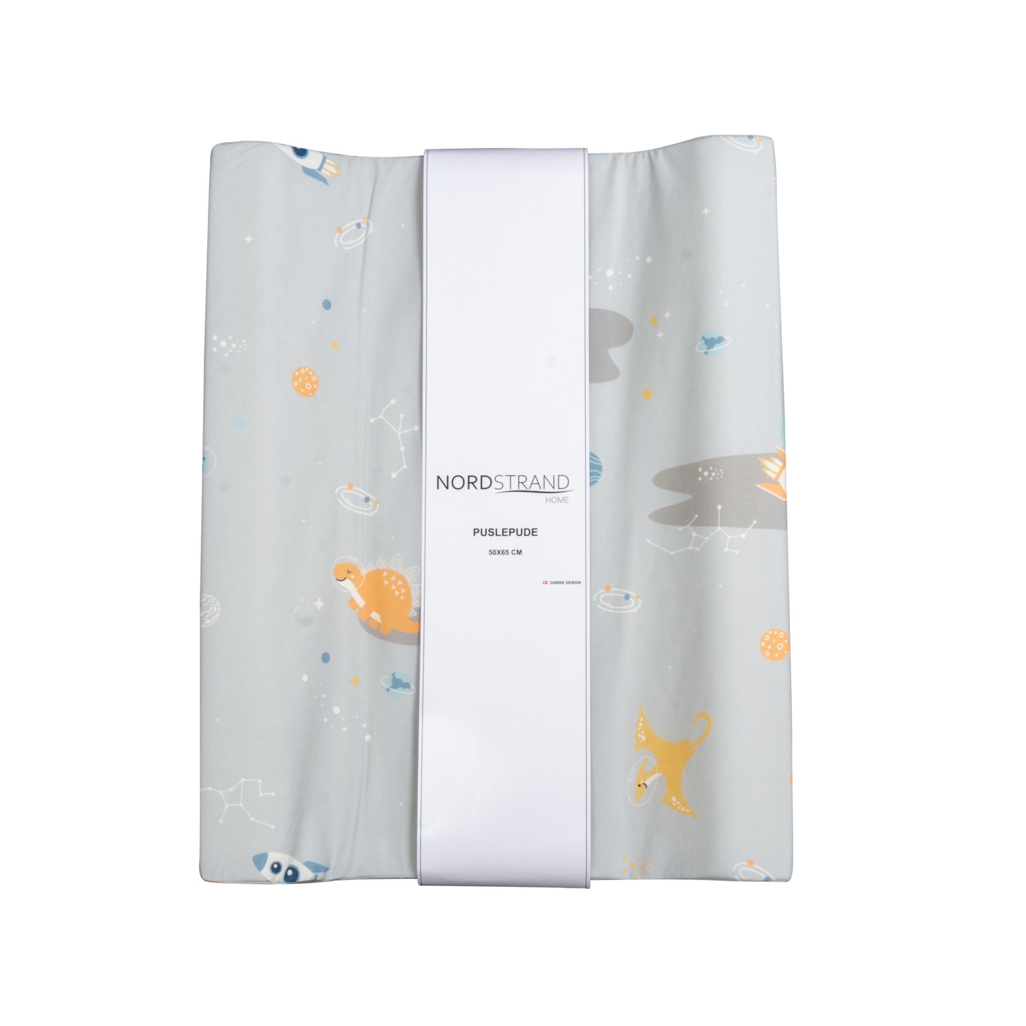 En puslepude i høj kvalitet og 100% bomuldsbetræk, perfekt til dit puslebord. Dette pusleunderlag er produceret med omtanke for dit barn - gode materialer, smart design med høje kanter og OEKO-TEX® certificering. Det søde design med dinosaurer i rummet findes både som sengerand, baby nest, baby sengetøj, puslepude og ammepude. Du kan derfor let skabe genkendelige, hyggelige og ikke mindst matchende omgivelser til det nye familiemedlem.