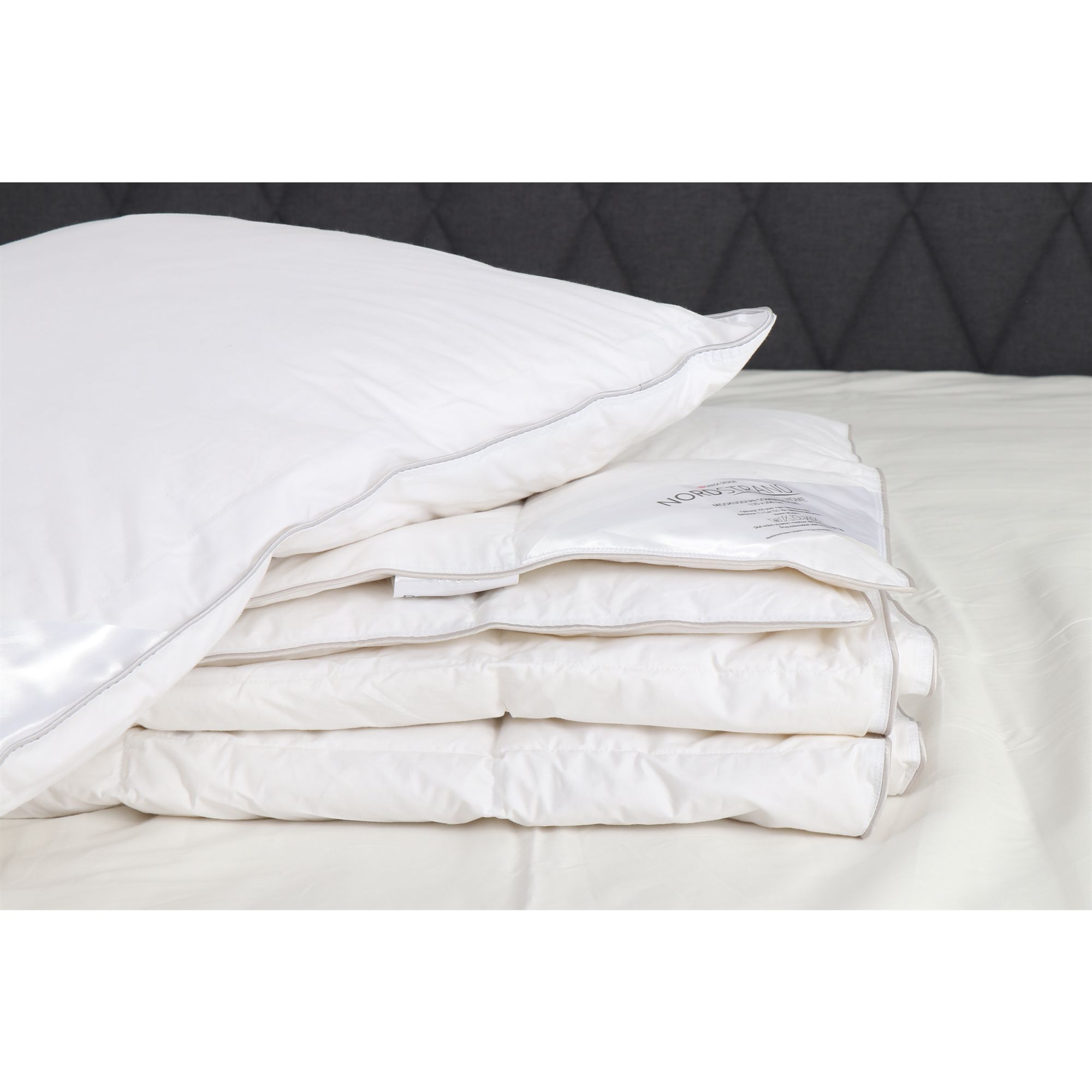 Det bløde bolster af 100% bomuld er helt fint tætvævet i små kassetter, så dunene har bedste vilkår for god og jævne varmefordeling, samt en høj åndbarhed og lethed. Denne tætte vævning gør også at dynen er NOMITE certificeret, da støvmider ikke kan trænge igennem bolsteret, hvilket også gør dynen velegnet til allergikere.