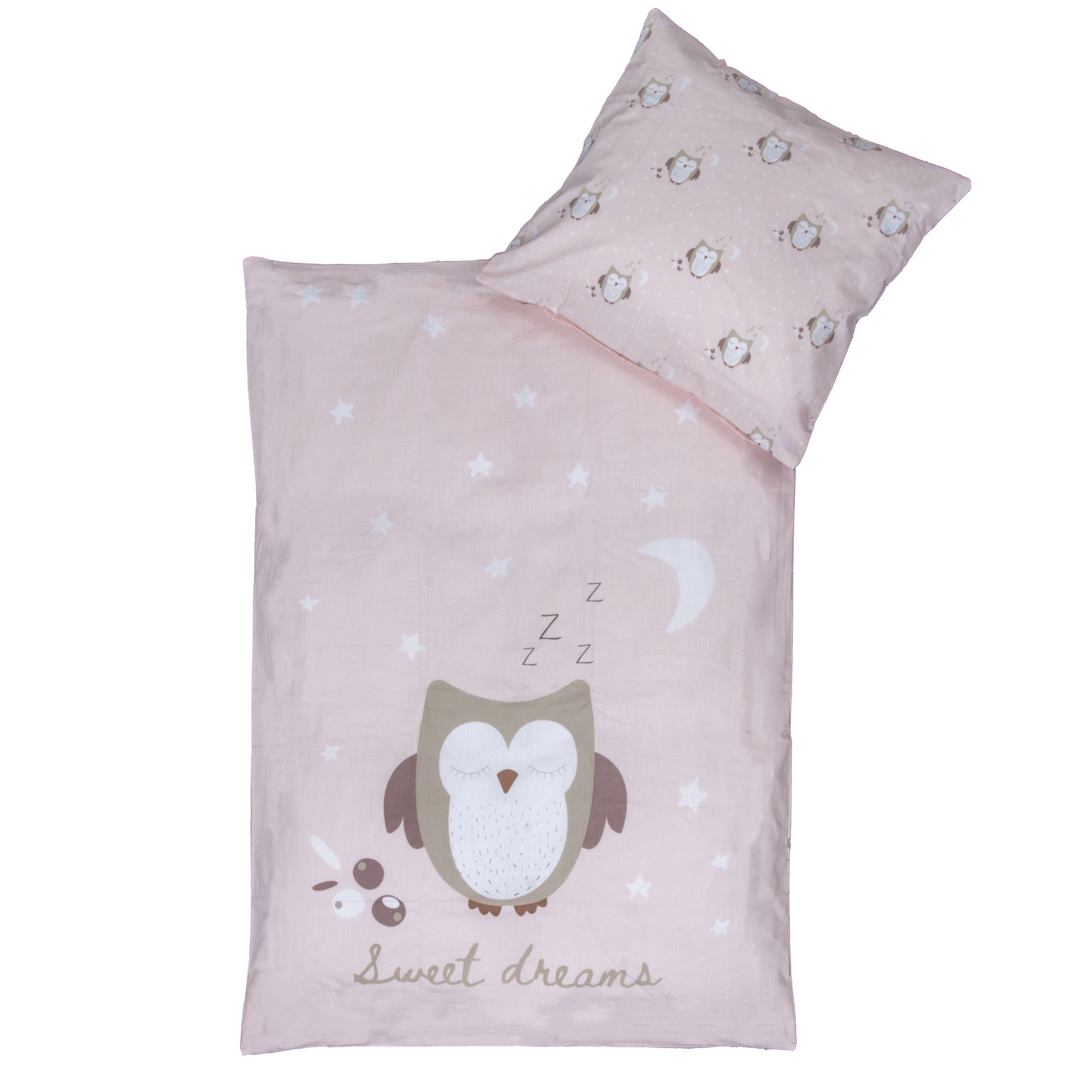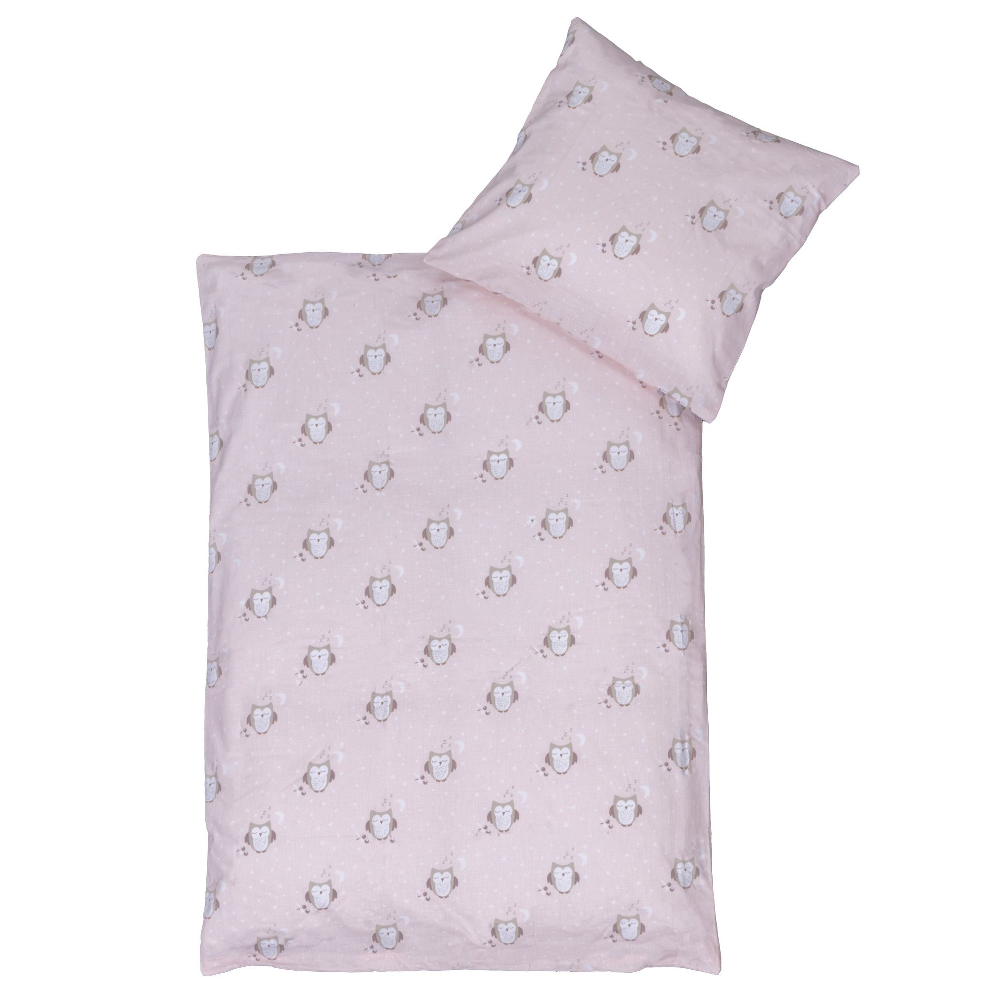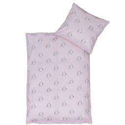 Ugle sengetøj 70x100 cm - Lyserødt baby sengesæt med sovende ugle - Vendbart motiv - 100% bomulds sengelinned - Nordstrand Home